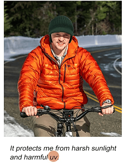 it can keep your forehead (include eyes) away from rain, snow storm, sand, damaging sun rays, in bad weather, while making you look stylish.